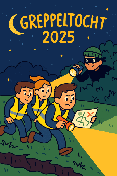 De Greppeltocht is een spannende tocht in het donker waarbij je met je groepje van punt A naar punt B navigeert met behulp van een kaart. Onderweg kun je extra punten verdienen, maar pas op… de hunters liggen op de loer! Laat je niet pakken!